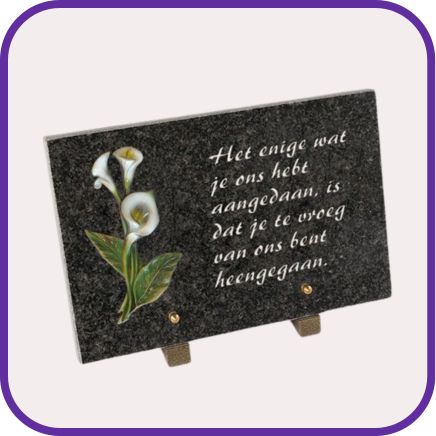 Wij bieden veel voorbeelden met een mooie standaard tekst, maar een persoonlijke tekst met een naam van uw dierbaren of een laatste groet is ook mogelijk op elke gedenksteen.