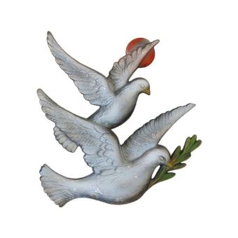 Duiven in Vogelvlucht in gekleurd brons 165x175mm.