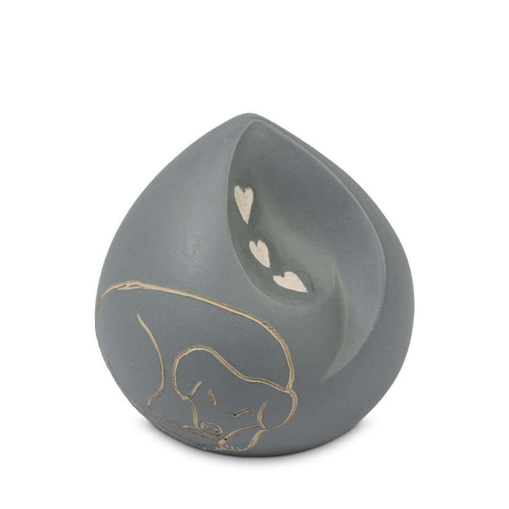 Ohm traan urn Hond in Grijsblauw keramiek met hartjes