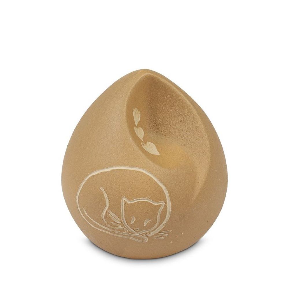 Ohm traan urn Poes in Okerkleurig keramiek met hartjes