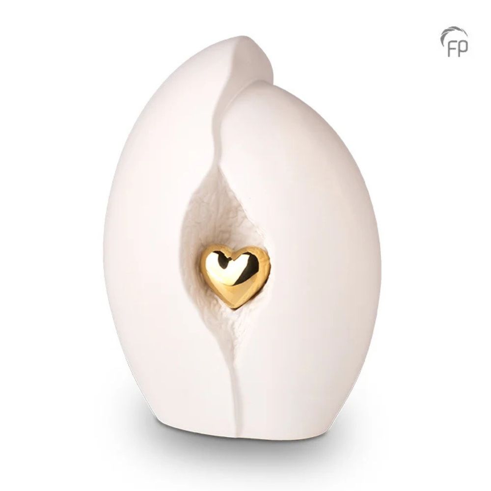 Urn in wit keramiek met goudkleurig hartje (3800ml)