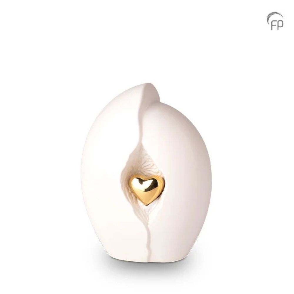 Urn in wit keramiek met goudkleurig hartje (2200ml)