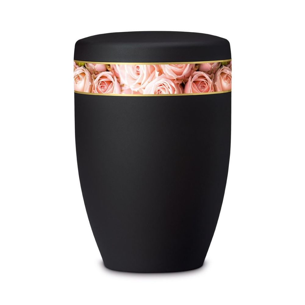 Deze urn is gedecoreerd met Rozenblaadjes op een gematteerde antraciet ondergrond. De natuurvriendelijke urn heeft 4500ml inhoud voor crematie-as, met deze inhoud is de urn geschikt voor de asbestemming van personen tot ongeveer 135kg