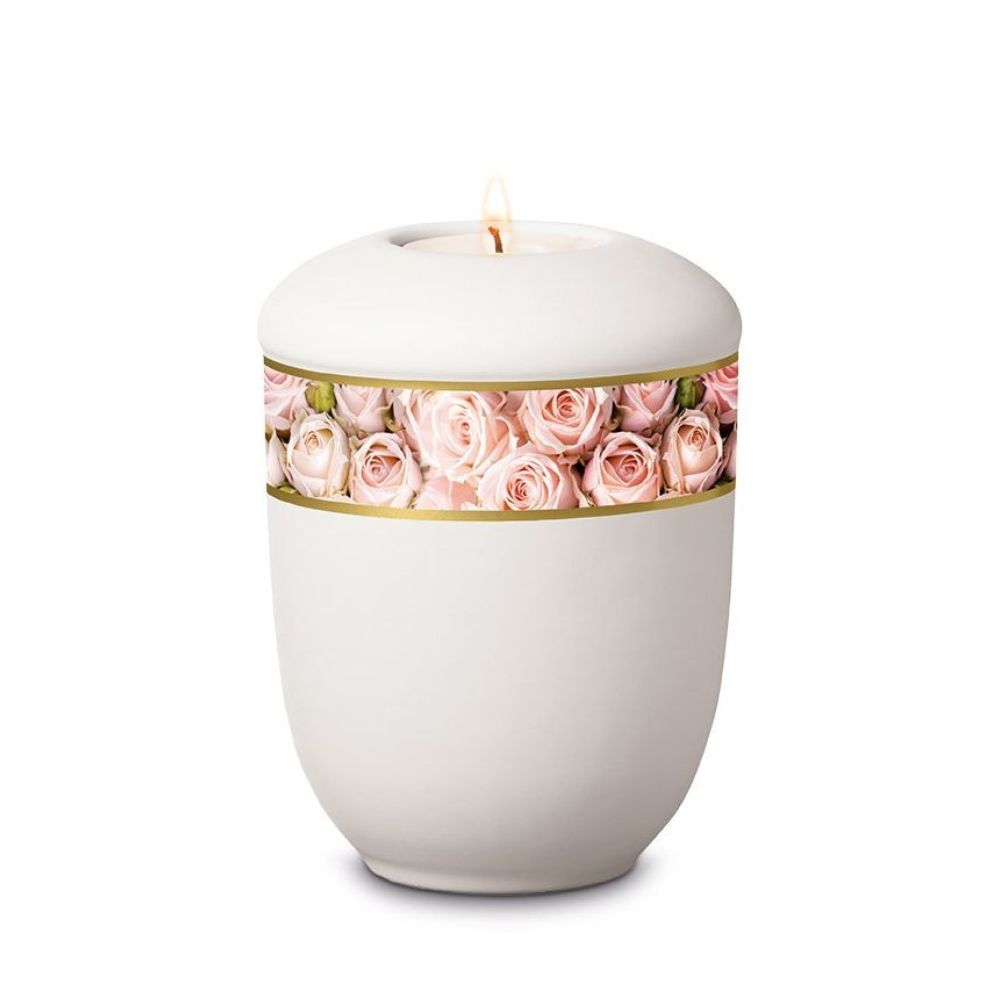Alternatieve artikelen voor Urn in gematteerd wit met rozenblaadjes (4500ml)