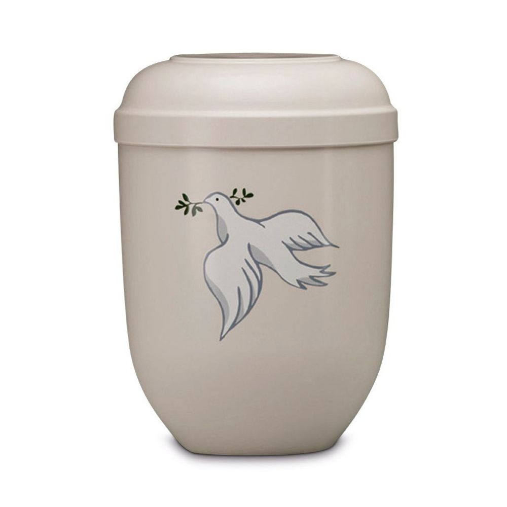 Natuurvriendelijke urn in Ecru met witte duif.